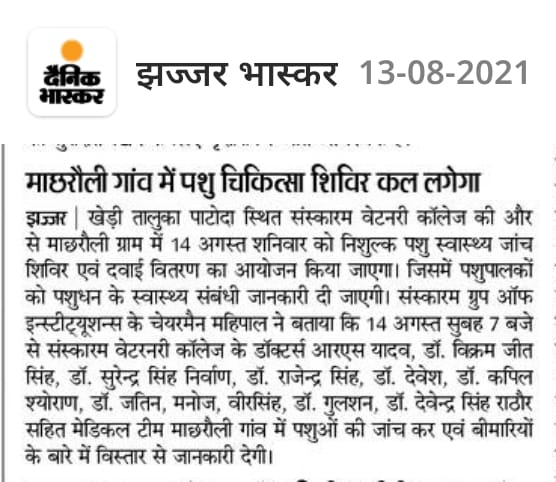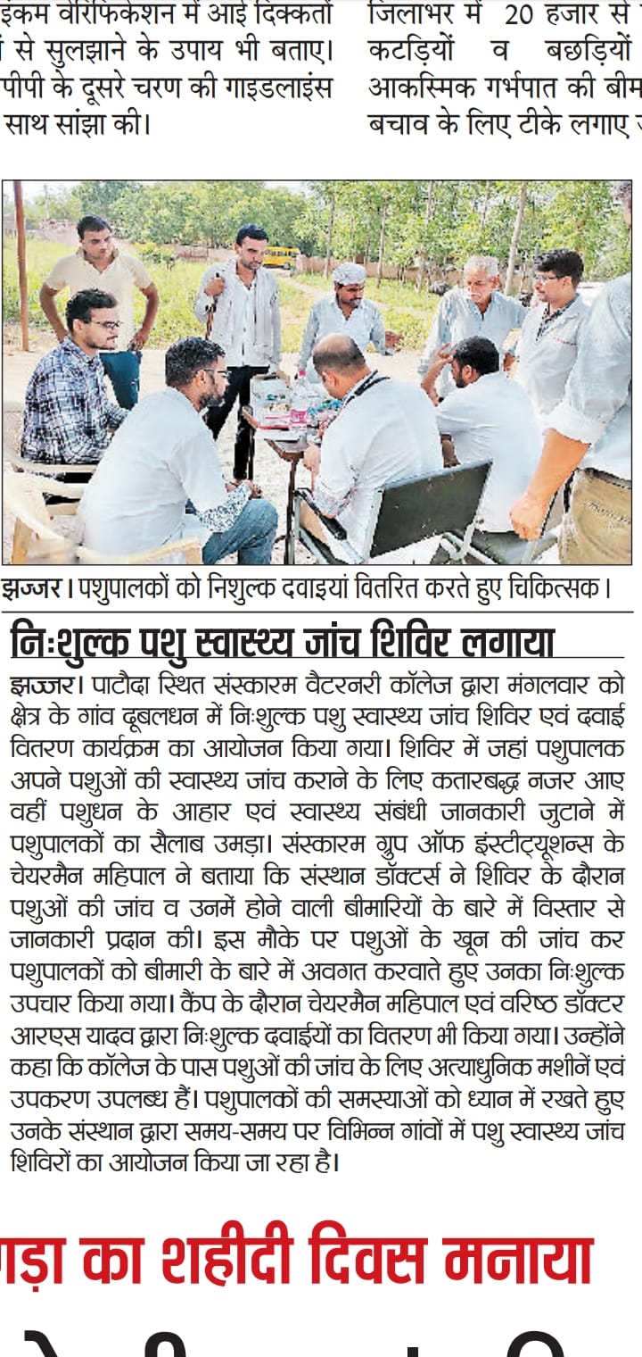 Our college has organized several free clinical camps in numerous districts of the state with the purpose to help the needy and resource poor farmer. Other than that, we educated the farmers on different diseases and aspect of prevention and control of different diseases. On an average 4-5 such camps were organized every month. In each camp, 50 to 100 animals were diagnosed for their illnesses, treated and operated upon. Animal keepers were advised regarding proper care of their animals for good health and productivity. This practice will be continued further with novel ideas and approaches.